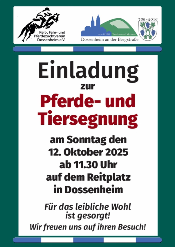 Am Sonntag den 04.10. konnten wir trotz beständigem Dauerregen eine schöne und harmonische Pferdesegnung mit 36 Pferde unseres und der umliegenden Reitvereine verbringen. Wir danken allen Teilnehmern für eine schöne Veranstaltung.